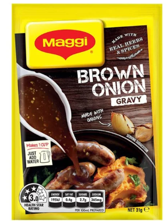 MAGGI Brown Onion Gravy Mix is the perfect pairing for your meat dishes. Made with real herbs and spices and packed with rich onion flavour, this gravy will take your meal to the next level.