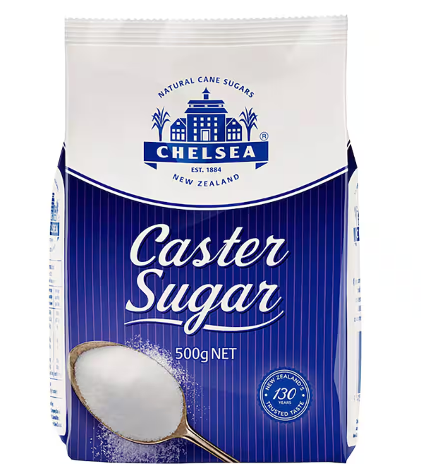 Very fine white sugar crystals make caster sugar able to dissolve easily. This feature makes it ideal for pavlova, meringues, puddings, jellies and cakes. When used in baking, the smaller sugar crystals caramelise evenly to produce a golden colour