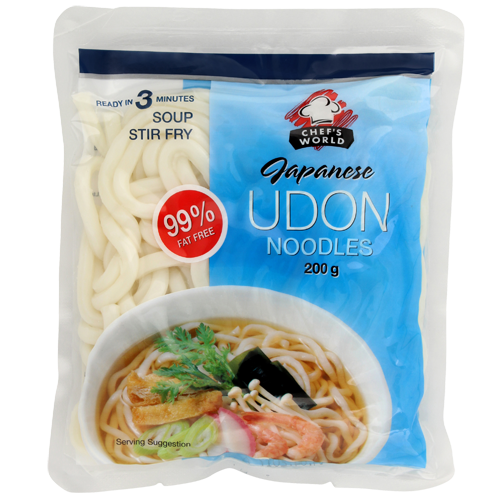 Chef’s World Udon Noodles are fresh, thick and chewy wheat-based noodles that are traditionally used in signature Japanese dishes such as Niko Udon (Beef Udon).